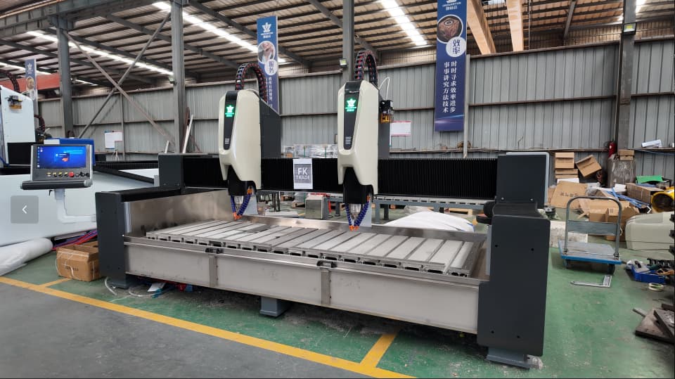 وفي الوقت نفسه، المحاور الثلاثة آلة نقش الأحجار ذات الرأسين تركز هذه الآلة، التي تم تسليمها إلى تايوان، على كفاءة الإنتاج الضخم. بفضل رأسي عمل مستقلين يعملان في وقت واحد، تُعد مثاليةً لنقش أنماط الجدران الخلفية، والأحجار التذكارية، والألواح الحجرية، والنقوش الزخرفية. بالمقارنة مع الآلات التقليدية ذات الرأس الواحد، يُحسّن هذا التصميم بشكل ملحوظ الإنتاجية لكل وردية، ويقلل الاعتماد على العمالة، ويضمن جودة نحت متسقة، مما يجعله حلاً فعالاً من حيث التكلفة للمصانع التي تتعامل مع طلبات مخصصة بكميات كبيرة.
